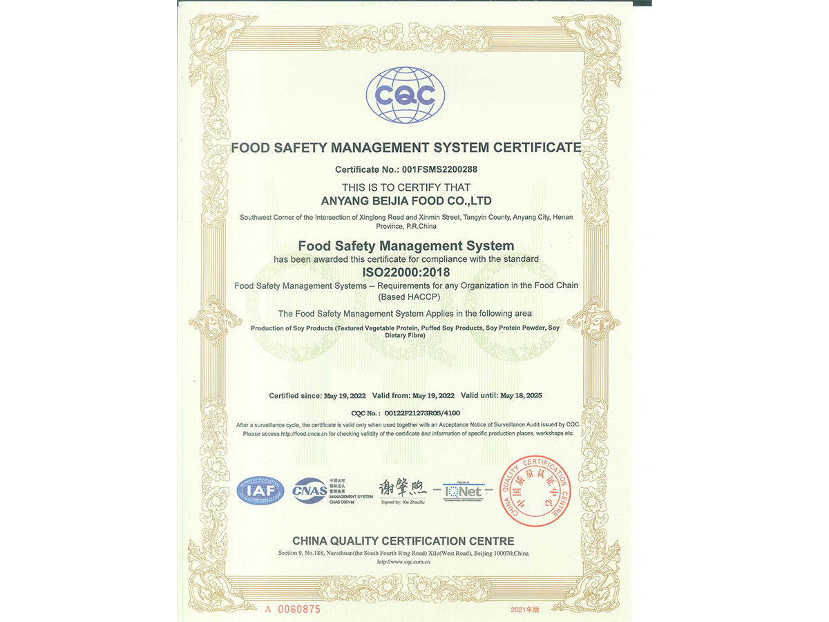 食品安全管理體系認證證書